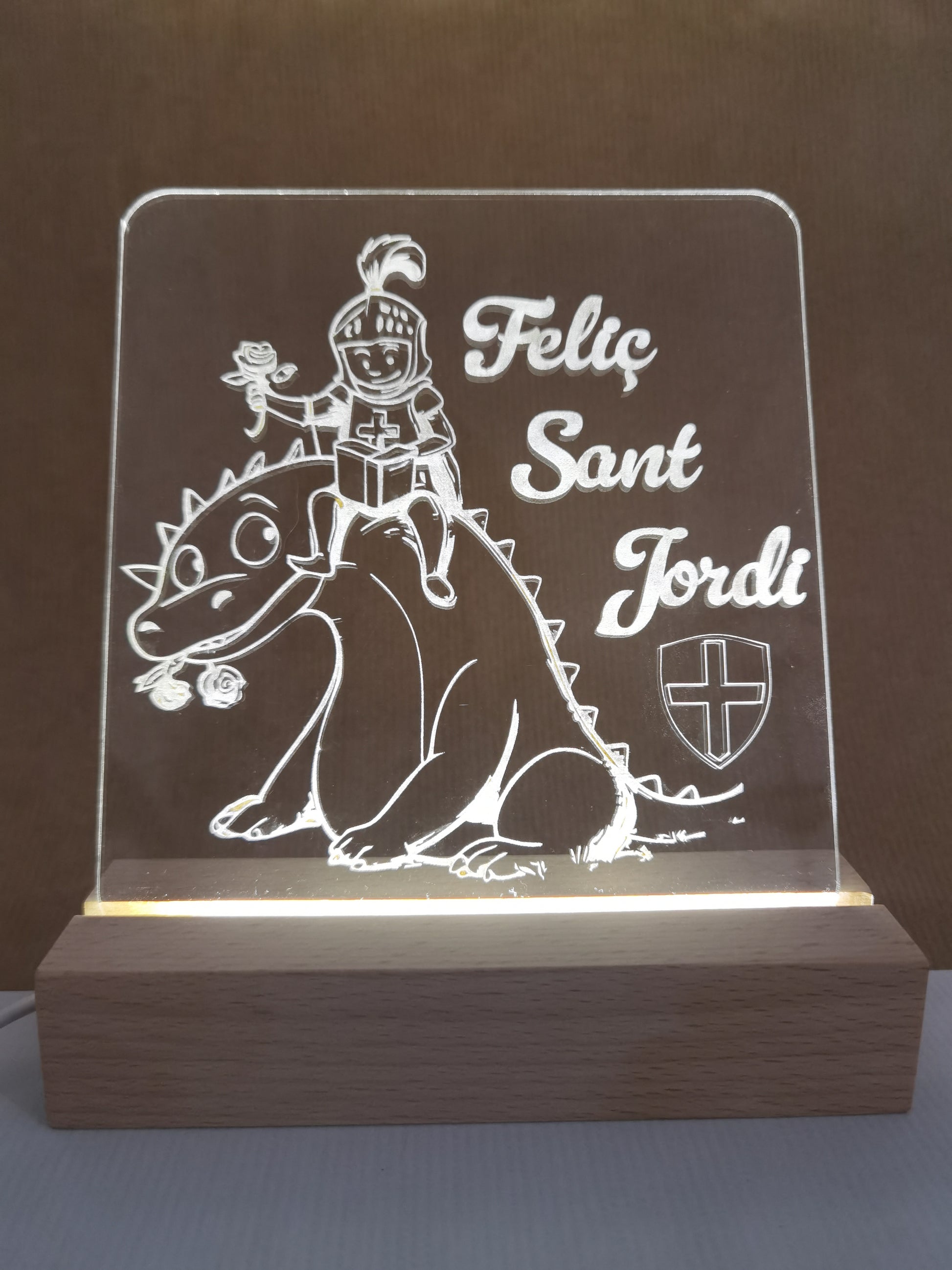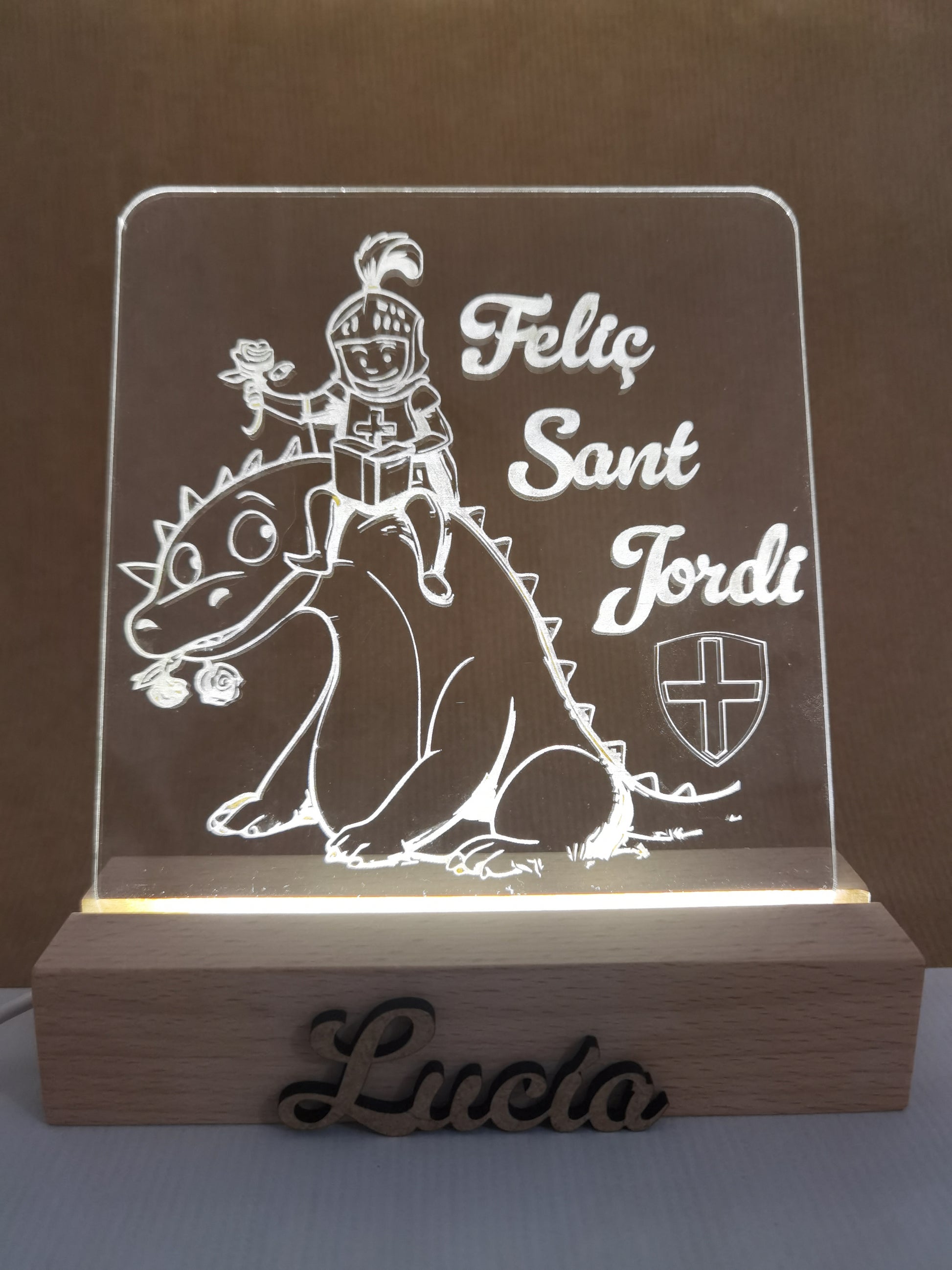 Lámpara led personalizable decoración Sant Jordi. Opción personalizable con nombre.